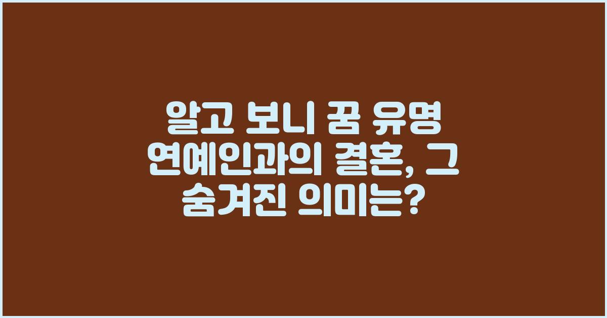 💡 연예인과의 결혼, 숨겨진 심리적 의미