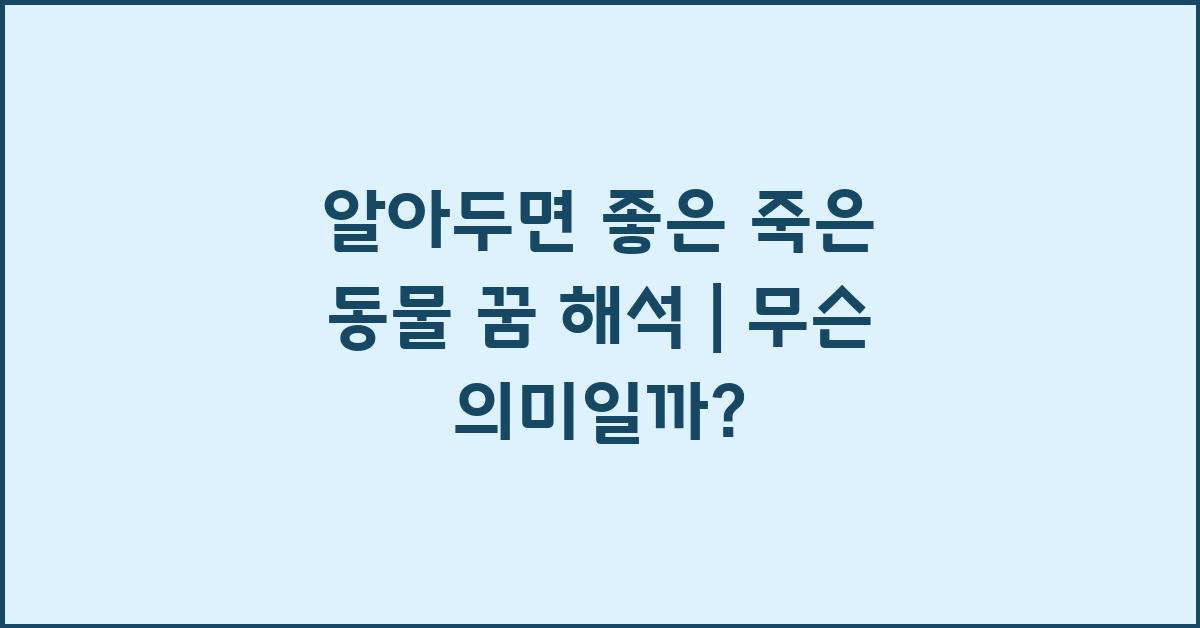 꿈을 꾸는 것은 우리의 무의식이 은밀하게 소통하는 방법 중 하나입니다. 특히 죽은 동물 꿈 해석은 많은 사람들에게 불안과 두려움을 불러일으킵니다. 이 꿈은 어떤 의미인지 궁금한 분들을 위해 알아두면 좋은 정보를 제공하고자 합니다. 저는 개인적으로 죽은 동물 꿈을 꾸었던 적이 있는데, 그때의 느낌이 지금도 선명하게 기억납니다. 무언가 중요한 메시지가 있음을 느꼈거든요. 여러분도 이런 경험 있으시죠?