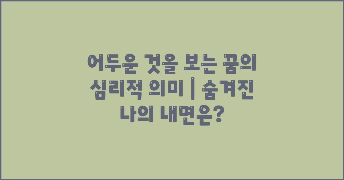 우리는 종종 꿈에서 어두운 것을 경험합니다. 이러한 꿈은 우리에게 어떤 메시지를 전달하고 있는 걸까요? '어두운 것을 보는 꿈의 심리적 의미'는 아주 깊고 복잡한 주제입니다. 이 꿈들은 우리 내면의 감정이나 두려움을 반영할 수 있으며, 과거의 경험이나 현재의 스트레스와 연관될 수 있습니다. 이 글을 통해 이러한 꿈의 의미를 더 깊이 탐구해보겠습니다.