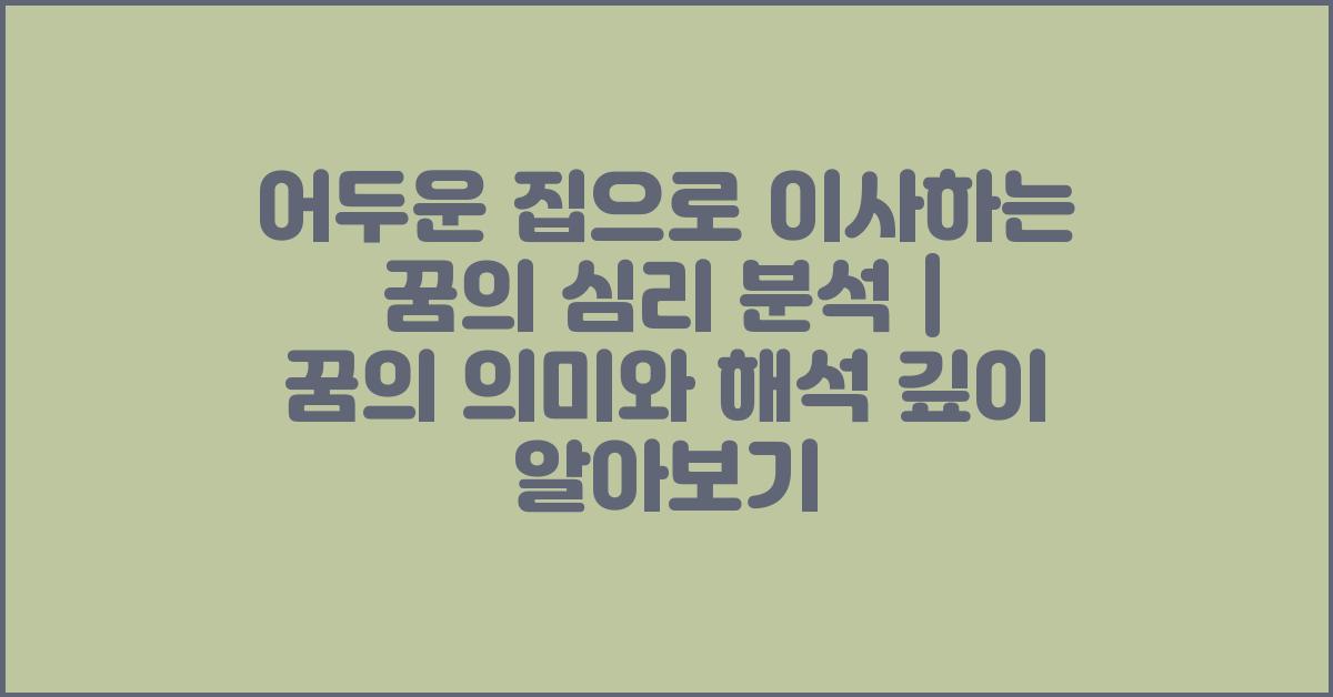 어두운 집으로 이사하는 꿈의 심리 분석 💭
