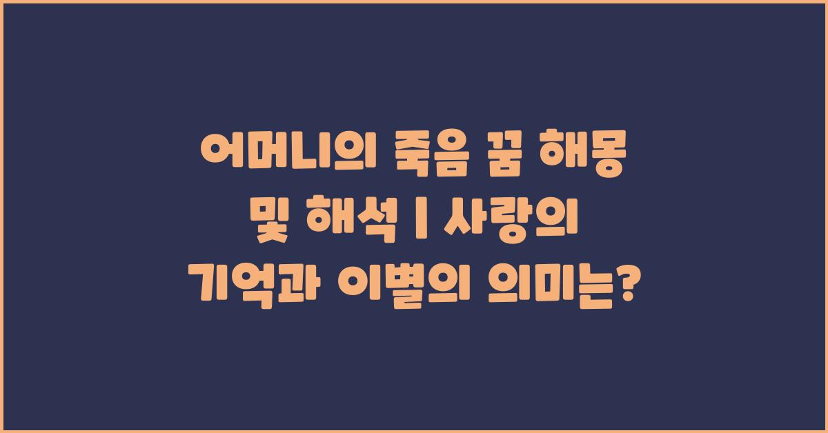 어머니의 죽음 꿈 해몽 및 해석 | 꿈해몽 꿈풀이 꿈해석 꿈의미는 이러한 상징적인 관계를 통해 어머니의 사랑을 되새기고, 이별의 아픔을 품고 살아가야 한다는 메시지를 전달할 수 있습니다. 이는 우리에게 삶의 중요한 가치와 교훈을 상기시킵니다.