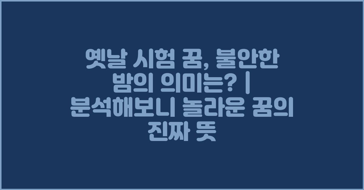 꿈은 언제나 우리에게 신비로운 요소를 가지고 있습니다. 특히 옛날 시험 꿈은 많은 이들에게 불안한 감정을 선사하곤 하죠. 꿈에서 시험을 본다는 것은 불안감과 압박감을 의미하는 경우가 많습니다. 오늘은 이러한 꿈의 의미에 대해 깊이 있는 분석을 해보겠습니다. 이로 인해 여러분의 옛날 시험 꿈, 불안한 밤의 의미는? | 꿈해몽 꿈풀이 꿈해석 꿈의미를 명확히 알 수 있을 것입니다.
