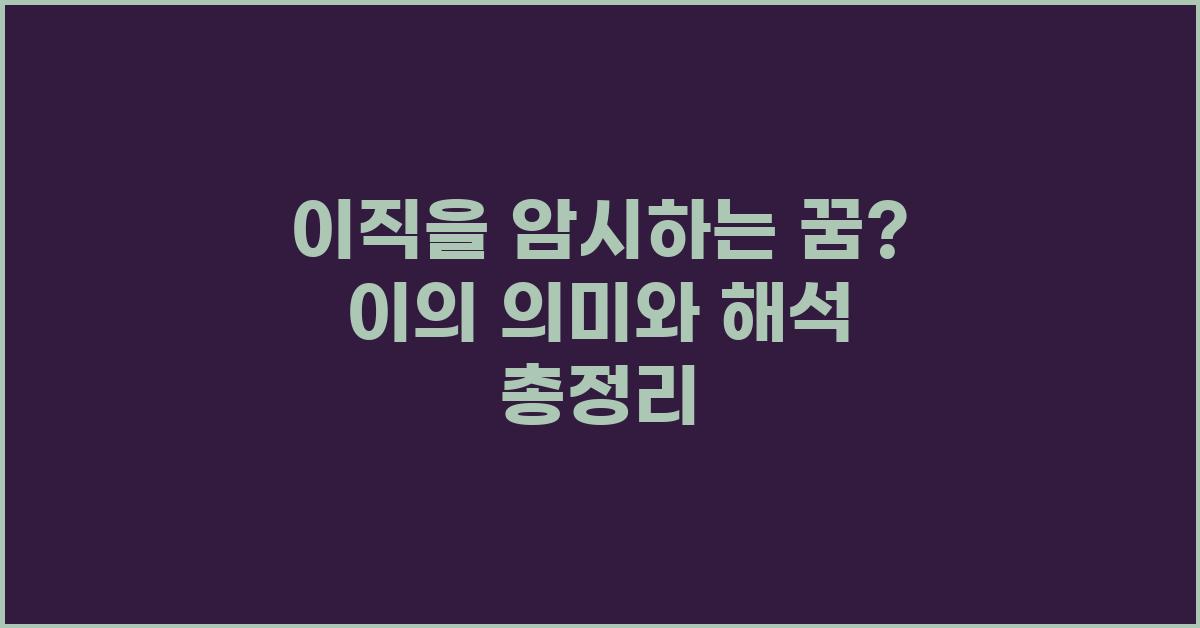 A1: 이직을 암시하는 꿈은 종종 변화의 필요성을 나타냅니다. 긍정적으로 해석하면 새로운 기회를 찾는 신호이기도 합니다.