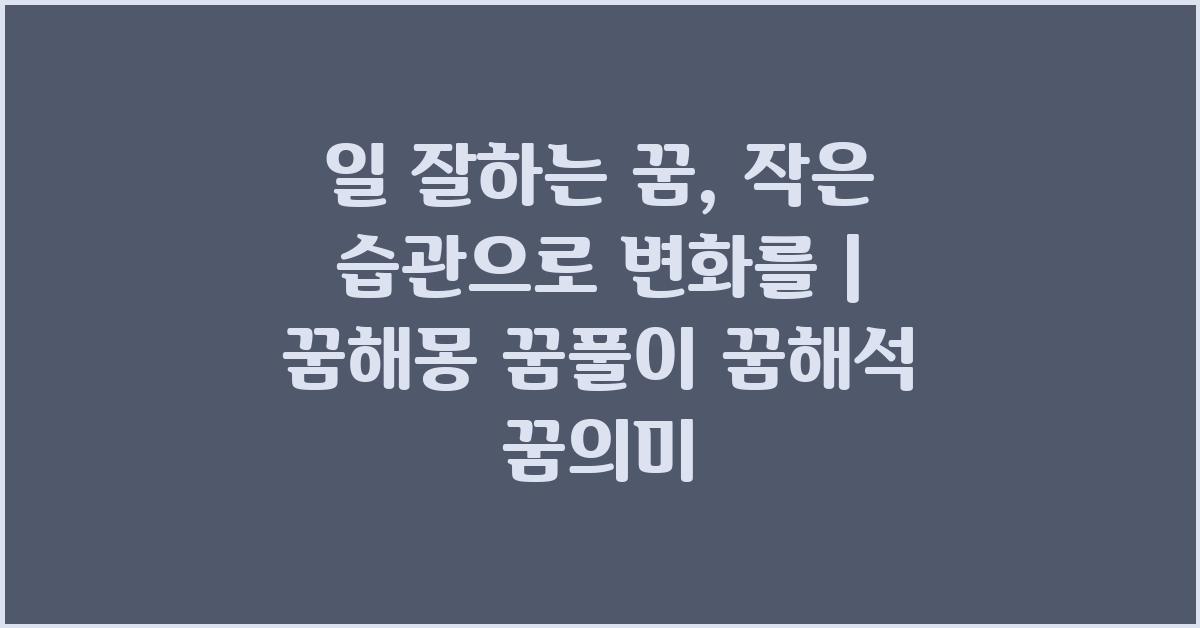 일 잘하는 꿈은 우리 모두의 바람이죠. 하지만 실현하기 위해서는 어떻게 시작해야 할까요? 작은 습관부터 시작하는 것이 key입니다! 이를 통해 우리는 변화의 기초를 다질 수 있습니다. 예를 들어, 매일 아침 일찍 일어나는 습관을 기르면 하루를 더 길게 사용할 수 있어요. 이렇게 기본적인 습관을 통해 변화의 가능성을 열어주게 됩니다.