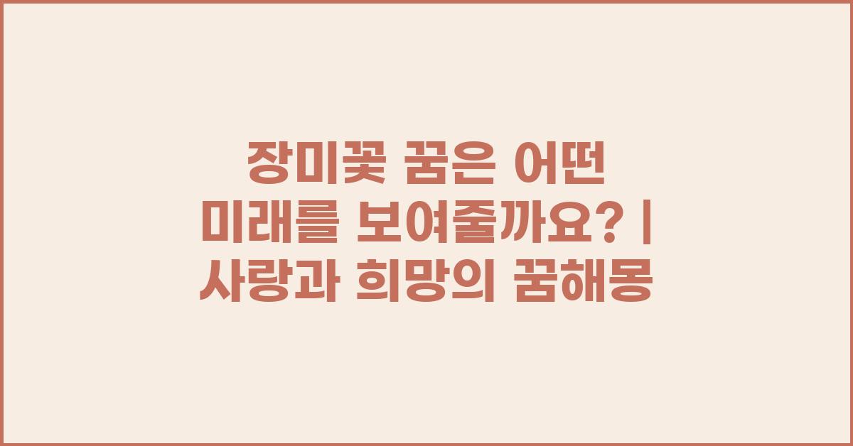 장미꽃 꿈은 당신의 미래에 대한 희망과 사랑을 나타내는 강력한 신호입니다. 장미꽃 꿈은 어떤 미래를 보여줄까요? | 꿈해몽 꿈풀이 꿈해석 꿈의미를 통해 이 꿈이 당신의 인생에 어떤 긍정적인 변화를 가져올 수 있을지 생각해 보시길 바랍니다.