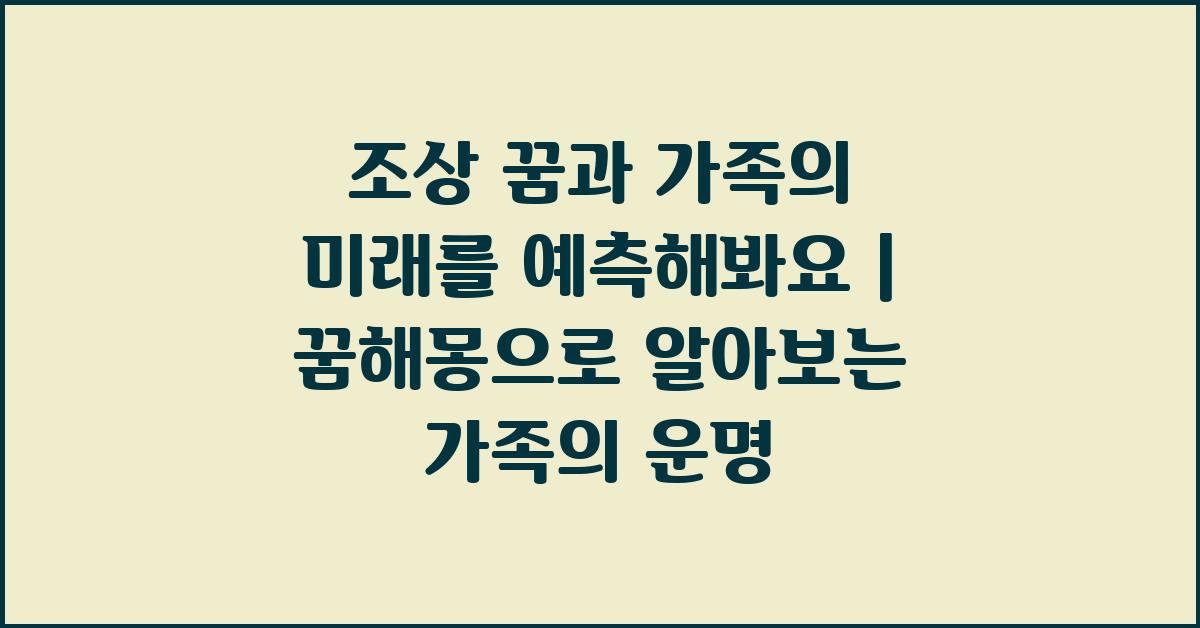 꿈은 단순한 환상이 아닙니다. 조상의 메시지가 포함되어 있는 경우가 많죠. 특별히 어떤 꿈을 꿨을 때, 그 꿈이 가족의 미래에 어떤 영향을 미칠지에 대해 진지하게 고민해보아야 합니다. 그래서 이번 글을 통해 조상 꿈과 가족의 미래를 예측해봐요 | 꿈해몽 꿈풀이 꿈해석 꿈의미를 함께 살펴보겠습니다.