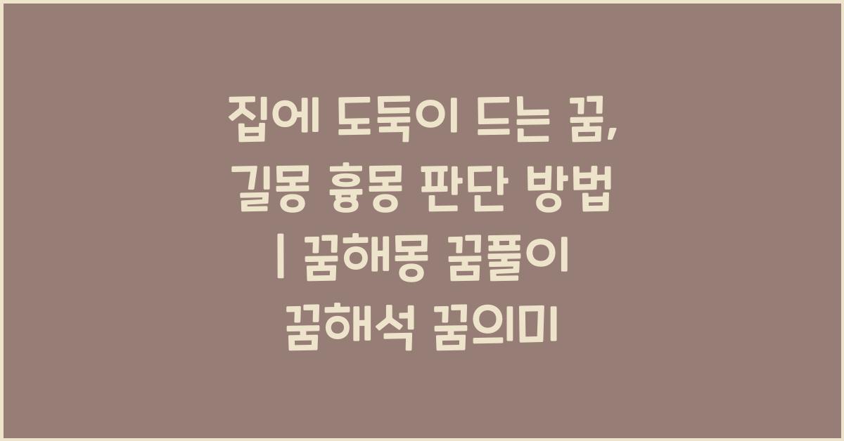 집에 도둑이 드는 꿈은 그 의미가 복잡하고 미묘합니다. 이 꿈이 길몽일지 흉몽일지를 판단하는 방법을 알아보세요!
