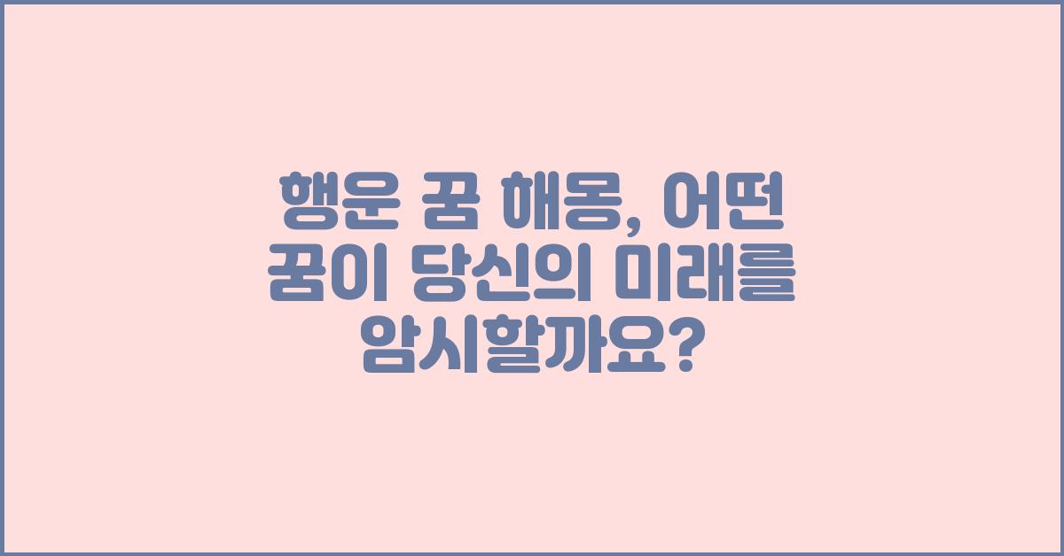 우리가 잠들면 펼쳐지는 꿈의 세계는 언제나 신비로움으로 가득 차 있습니다. 꿈을 통해 우리는 무의식의 깊은 속삭임을 들을 수 있죠. 특히, 행운 꿈 해몽: 꿈은 현실을 말해줍니다 | 꿈해몽 꿈풀이 꿈해석 꿈의미는 우리의 미래에 대한 중요한 암시를 담고 있을 수 있습니다. 이러한 꿈들은 단순한 환상이 아닌, 우리 삶에 큰 영향을 미치는 메시지를 담고 있다고 믿습니다.