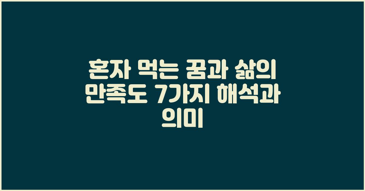 혼자 먹는 꿈은 여러 해석이 가능한 깊이 있는 주제입니다. 이 꿈을 통해 당신의 심리 상태를 진단하고 삶의 만족도를 높이는 방법을 찾는 것이 중요합니다. 혼자일 때 느끼는 감정은 어쩌면 나 자신을 찾는 과정일 수 있습니다. 혼자 먹는 꿈과 삶의 만족도 | 꿈해몽 꿈풀이 꿈해석 꿈의미를 통해 진정한 자아를 발견하고, 더 행복한 삶을 영위할 수 있도록 노력해보세요.