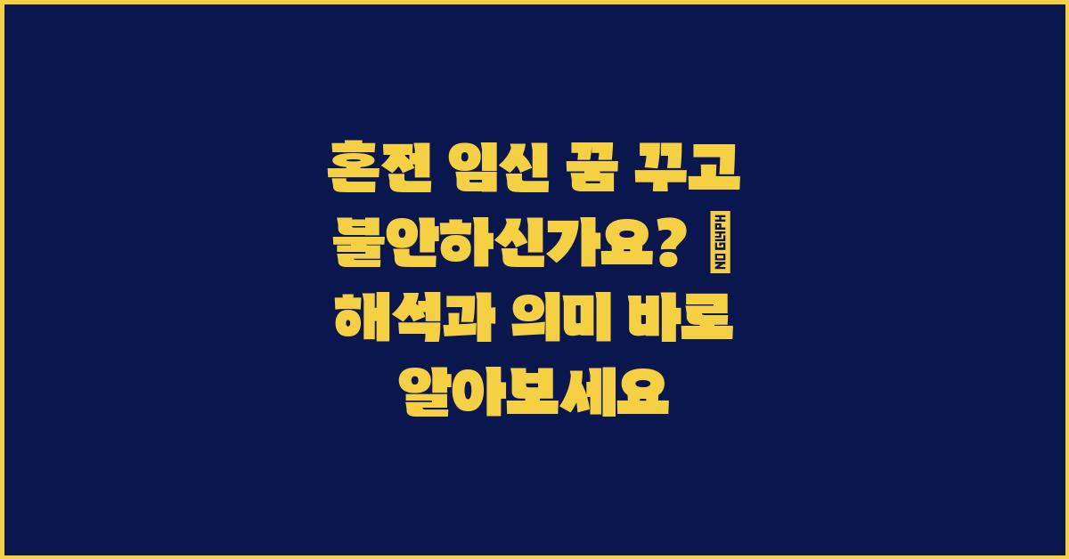 혼전 임신 꿈 꾸고 불안하신가요? 그렇다면 꿈 해석에 대한 과정을 살펴보는 것이 중요해요. 꿈을 해석하는 첫 단계는 꿈의 내용을 정리하는 것입니다. 당신은 어떤 감정을 느꼈는지, 꿈에서 어떤 사건들이 일어났는지를 적어보세요. 이렇게 적은 것을 통해 더 깊은 해석이 가능해지죠.