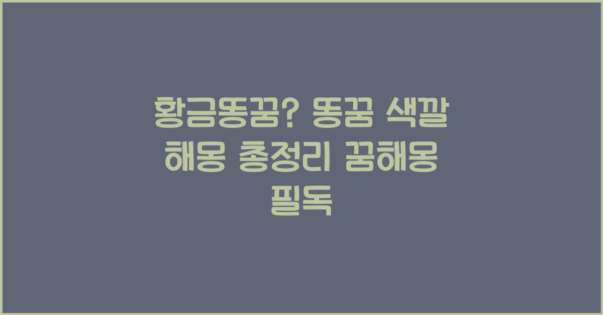 저도 몇 번의 황금똥꿈을 꾼 적이 있습니다. 그때마다 작은 변화들이 제 삶으로 들어왔고, 차츰 좋은 일들이 생기기 시작했어요. 이러한 경험은 제가 꿈을 보고 해석하는 방식을 바꿔놓았습니다. 꿈은 단순한 환상이 아니라, 우리에게 메시지를 전달하는 중요한 수단이 되기도 하죠. 특히 황금똥꿈? 똥꿈 색깔 해몽 | 꿈해몽 꿈풀이 꿈해석 꿈의미를 토대로 더 나은 미래를 구축하는 데에 큰 도움을 주었습니다.
