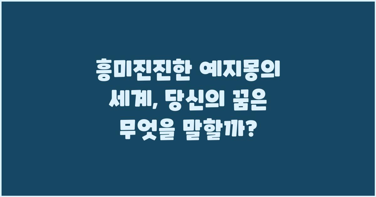 여러분, 안녕하세요! 오늘은 우리 삶과 일상 속에서 자주 찾아오는 흥미로운 주제인 꿈에 대해 이야기해보려고 합니다. 많은 사람들이 꿈을 통해 그들의 감정이나 생각을 파악하려고 하죠. 특히, 예지몽이나 전조 증상들이 우리에게 어떤 메시지를 전달하고 있는지 살펴보는 것도 매우 흥미로운 일입니다. 흥미진진한 예지몽의 세계: 전조 증상과 해석 | 꿈해몽 꿈풀이 꿈해석 꿈의미에 대한 탐구를 시작해볼까요?