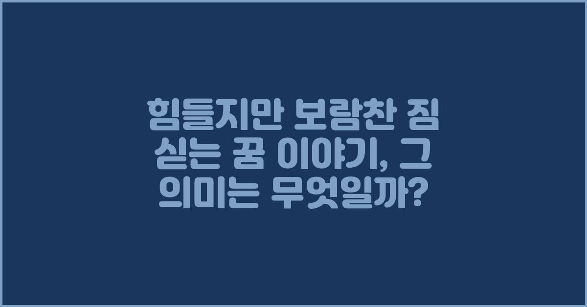 결국 꿈 속의 짐은 우리에게 중요한 교훈과 메시지를 줍니다. 힘든 짐을 나르는 과정을 통해 더 나은 나를 만나고, 성장할 기회를 얻는 것입니다. 여러분도 이런 경험 있으시죠? 힘들지만 그 안에 감춰진 보람을 느껴보세요. 힘들지만 보람찬 짐 싣는 꿈 이야기 | 꿈해몽 꿈풀이 꿈해석 꿈의미는 결코 무의미한 것이 아닙니다.